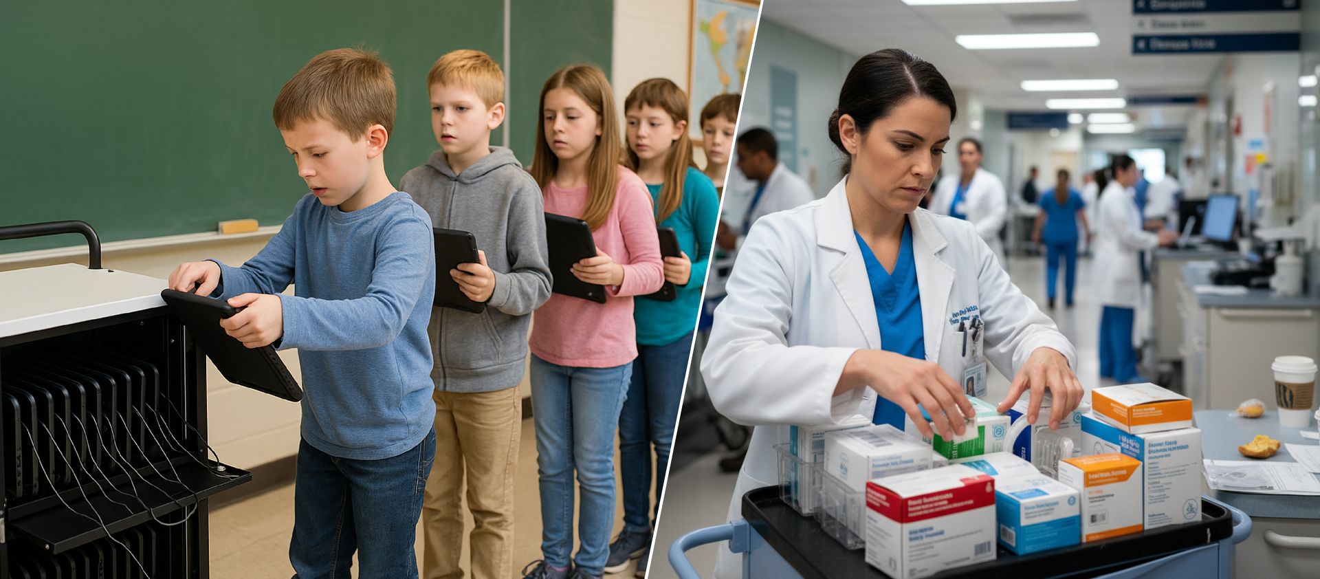 Im Bildungsbereich nahm eine scheinbar kleine Aufgabe – das Entnehmen und Zurücklegen von Tablets vor und nach dem Unterricht – oft 5–10 Minuten in Anspruch und führte zu unnötigen Verzögerungen.