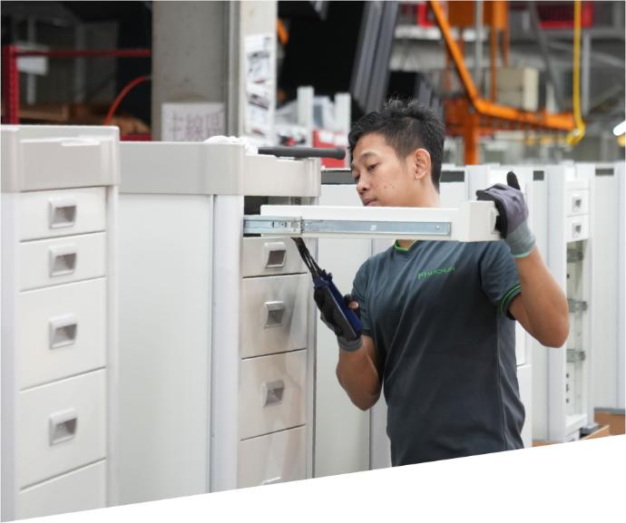 Wir produzieren jährlich über 8.500 Produkte und verwalten mehr als 96.000 Arten von Rohmaterialien und Bauteilen. Unser umfangreicher Teilebestand bietet Ihnen alle Möglichkeiten, um Ihre maßgeschneiderten Produkte zu gestalten.