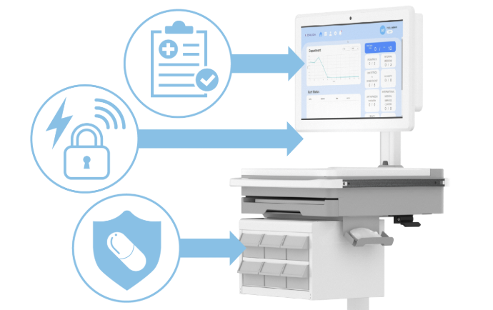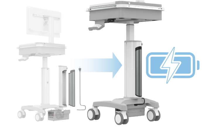 プリンター、引き出し、電源モジュールなど多様な周辺機器をサポートし、カートモデルに応じて柔軟に構成可能です。