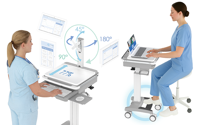 WoW(ワークステーションオンホイール)シリーズは、医療情報システムと移動作業のニーズを統合し、コンピュータ、モニター、スキャナー、周辺機器をサポートします。電子カルテ(EMR)へのアクセス、遠隔医療、臨床文書作業に最適で、効率的で安全なデジタルケア環境を提供します。各モデルは電源あり/なしの両バージョンがあり、OEM/ODM協力のもとでIT統合ニーズに対応可能です。