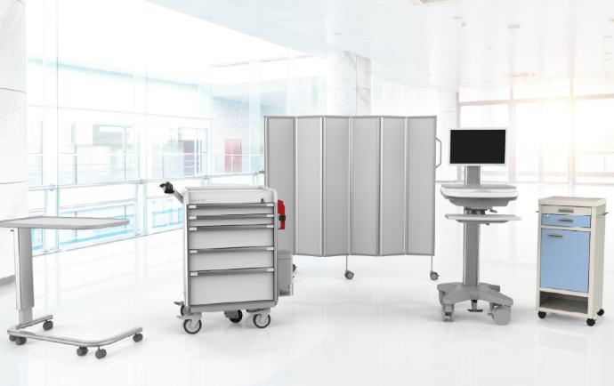 Ward carts, bedside cabinets, and nursing stations for diverse clinical needs.